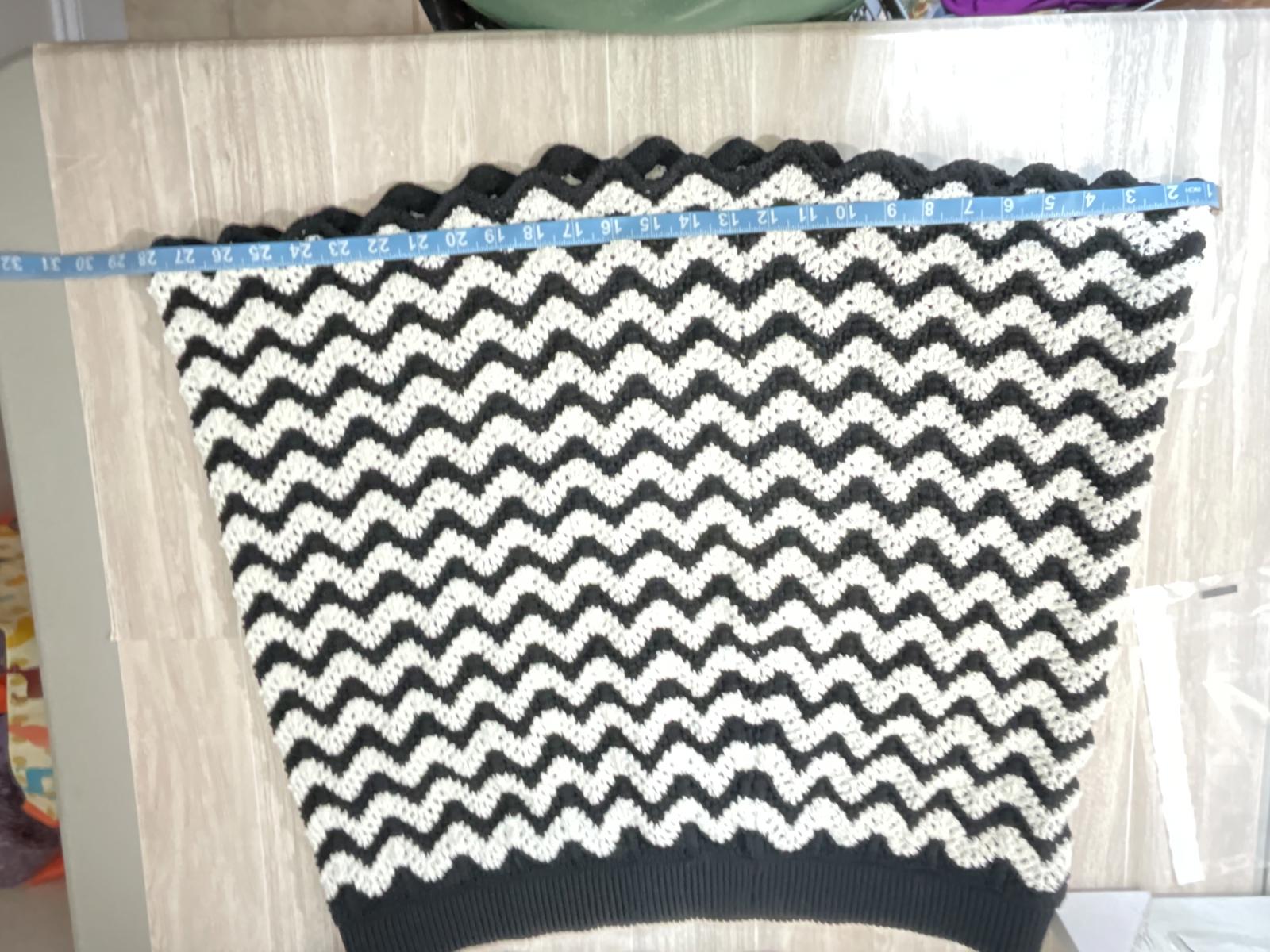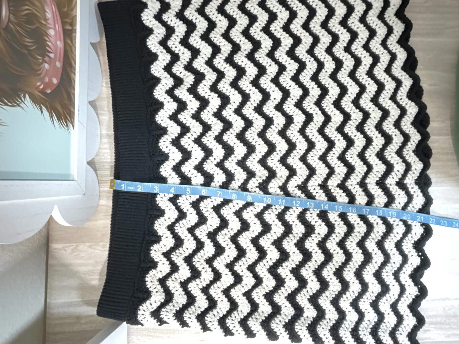 Elevate your boho wardrobe with this Ava & Viv zig-zag crochet knit midi skirt. The retro black & white chevron pattern channels a 60s mod vibe, reimagined for modern wear, so you get standout style that pairs effortlessly with everything from chunky knits to sleek blouses. The textured crochet knit adds depth and movement, making the skirt feel vibrant whether you’re strolling city streets, heading to the office, or dancing at a weekend gathering.