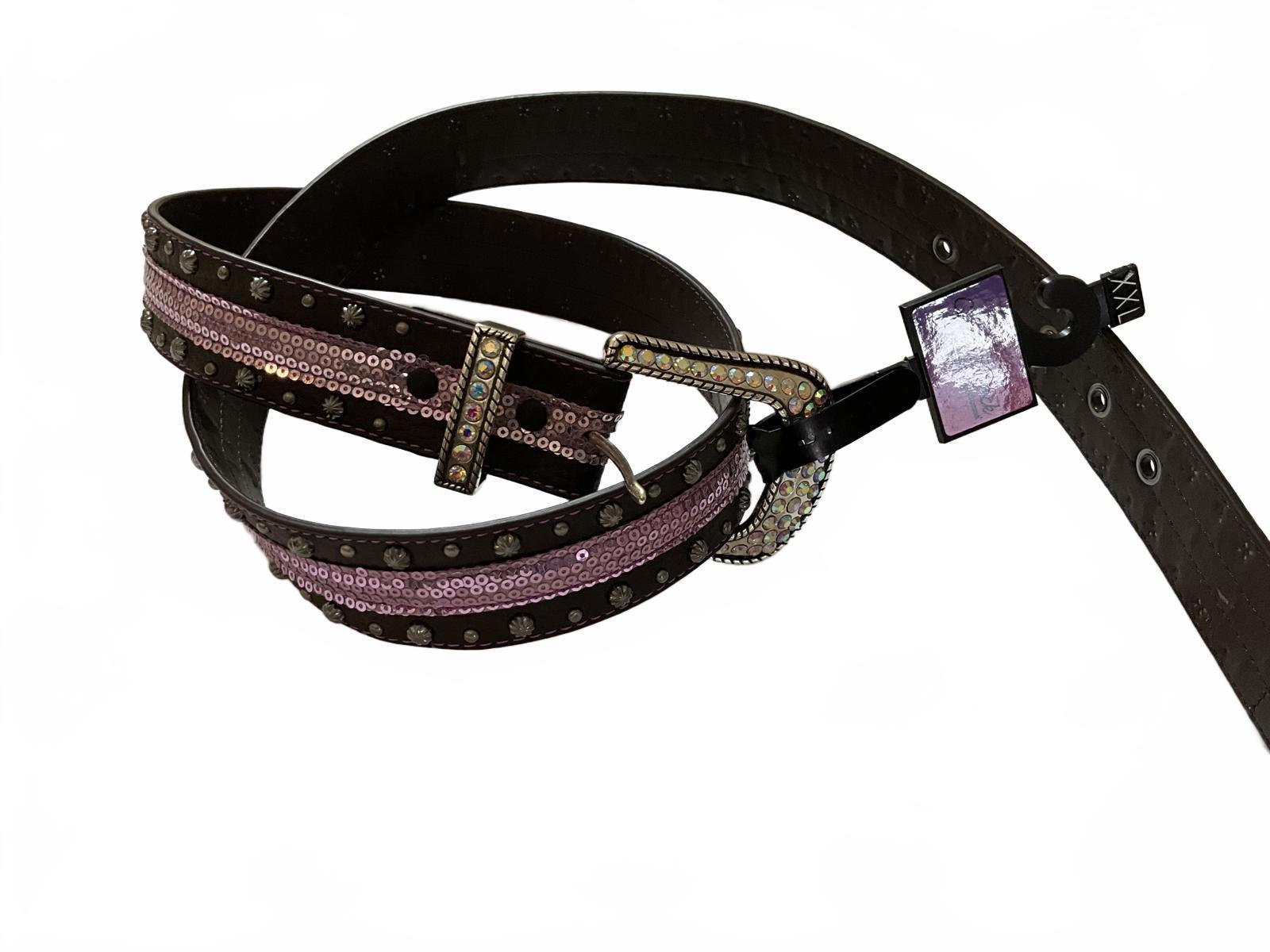 Cowgirl Rock Women's Brown Leather Belt with Pink Sequins -