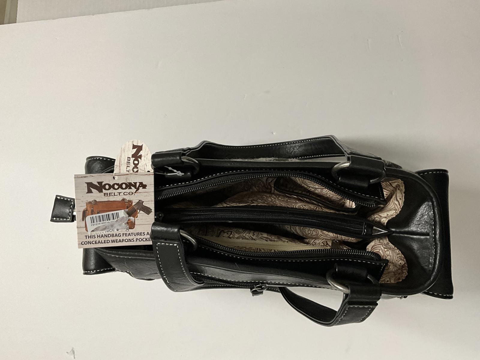 Details at a glance: Nocona brand, Southwestern Aztec tapestry design, faux leather trim, roomy interior, sturdy shoulder straps, and a concealed carry pocket for added everyday utility. Ships fast and is packaged with care, so you can enjoy this distinctive piece as soon as it arrives.